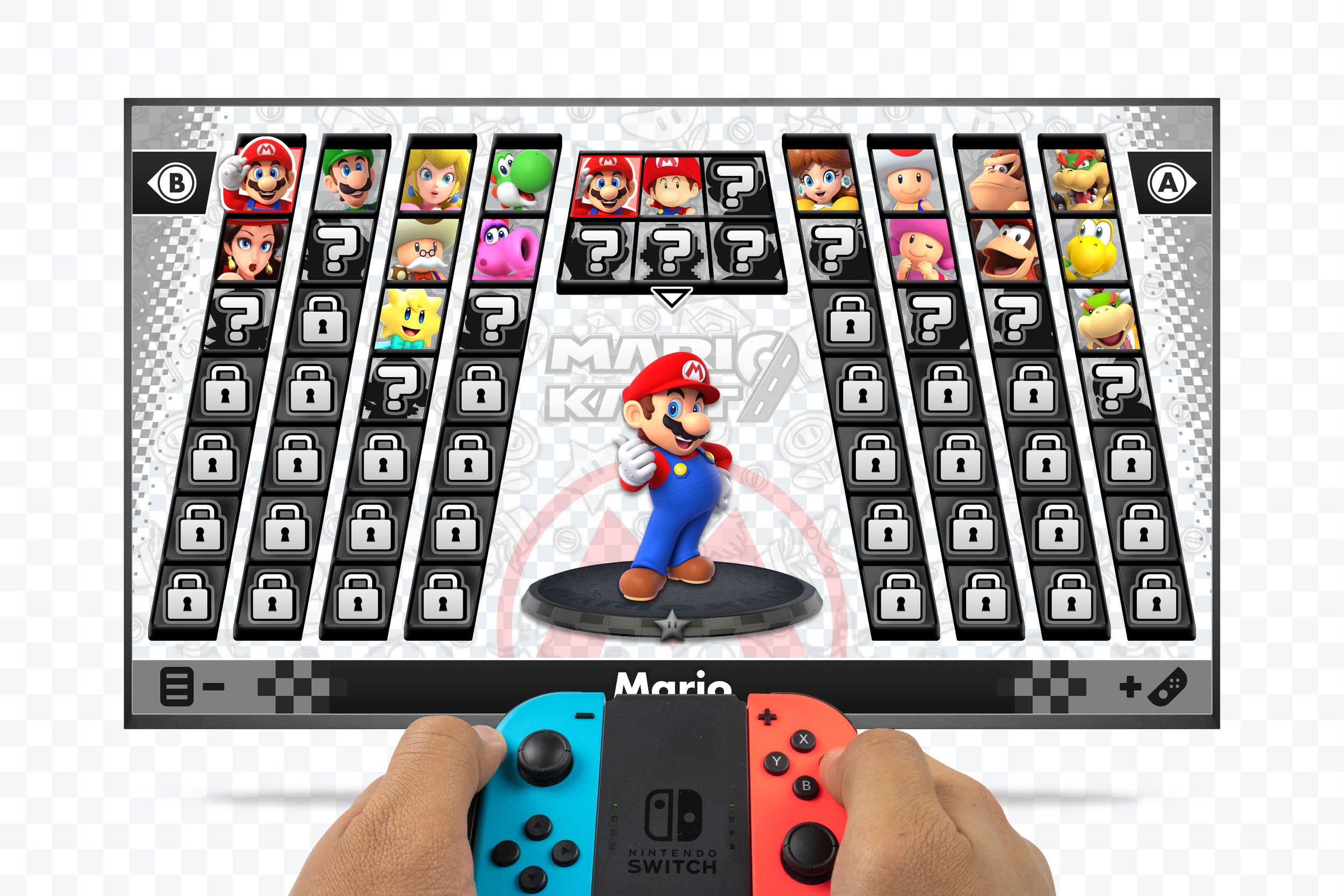 A personal and non-profit project that involved creating a UI design from scratch for a fan-made Mario Kart character selection screen. As of making this project, “Mario Kart 9” is unreleased and unannounced, so I also made a mock-up for the game’s logo too. This is a purely hypothetical fan design and has no affilation with Nintendo; only the menu design is my own, all characters belong to Nintendo.
